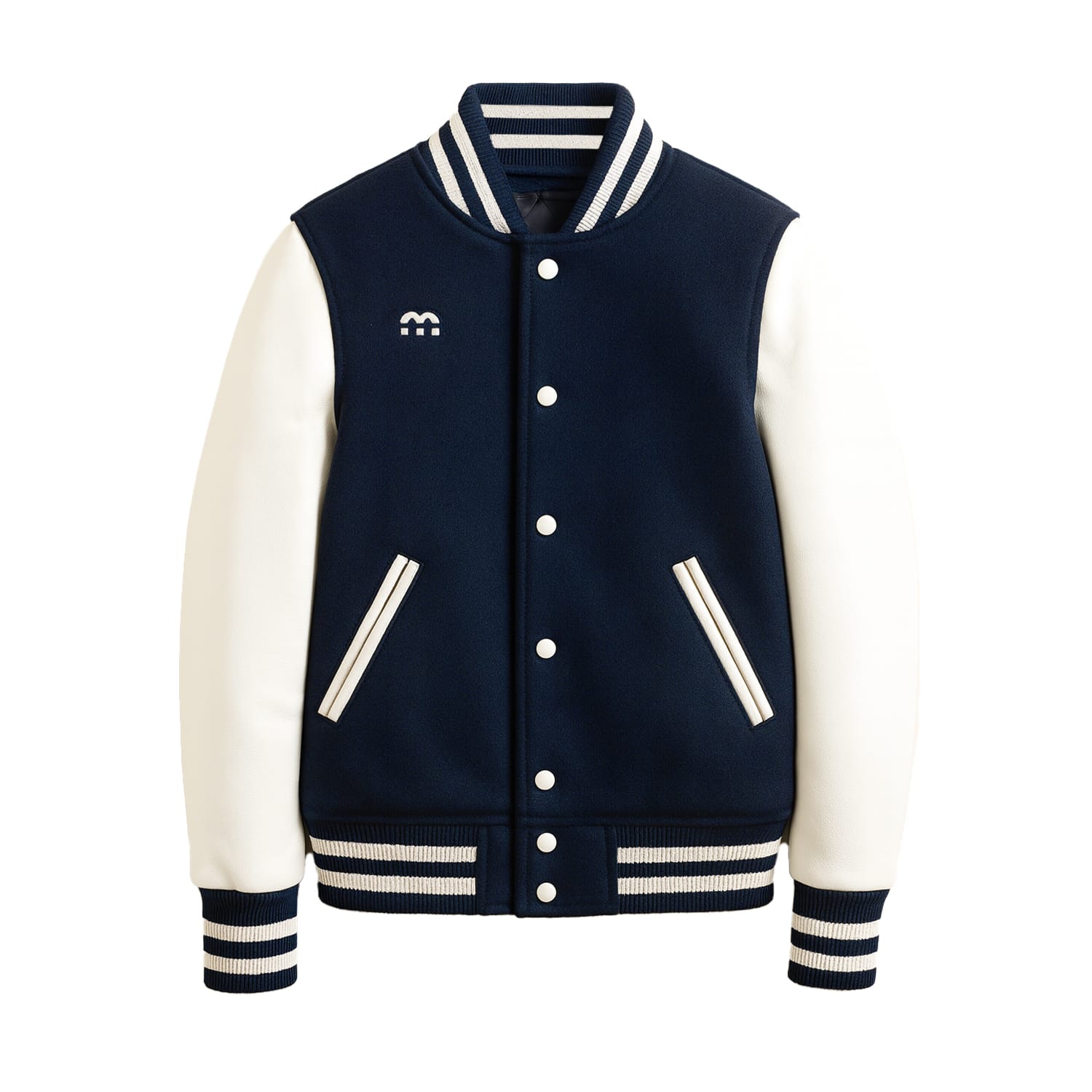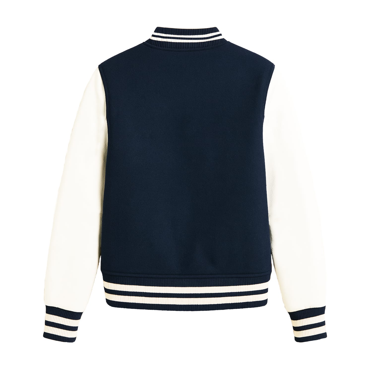 Unisex college jacket gemaakt van wol, leer polyester en katoen.