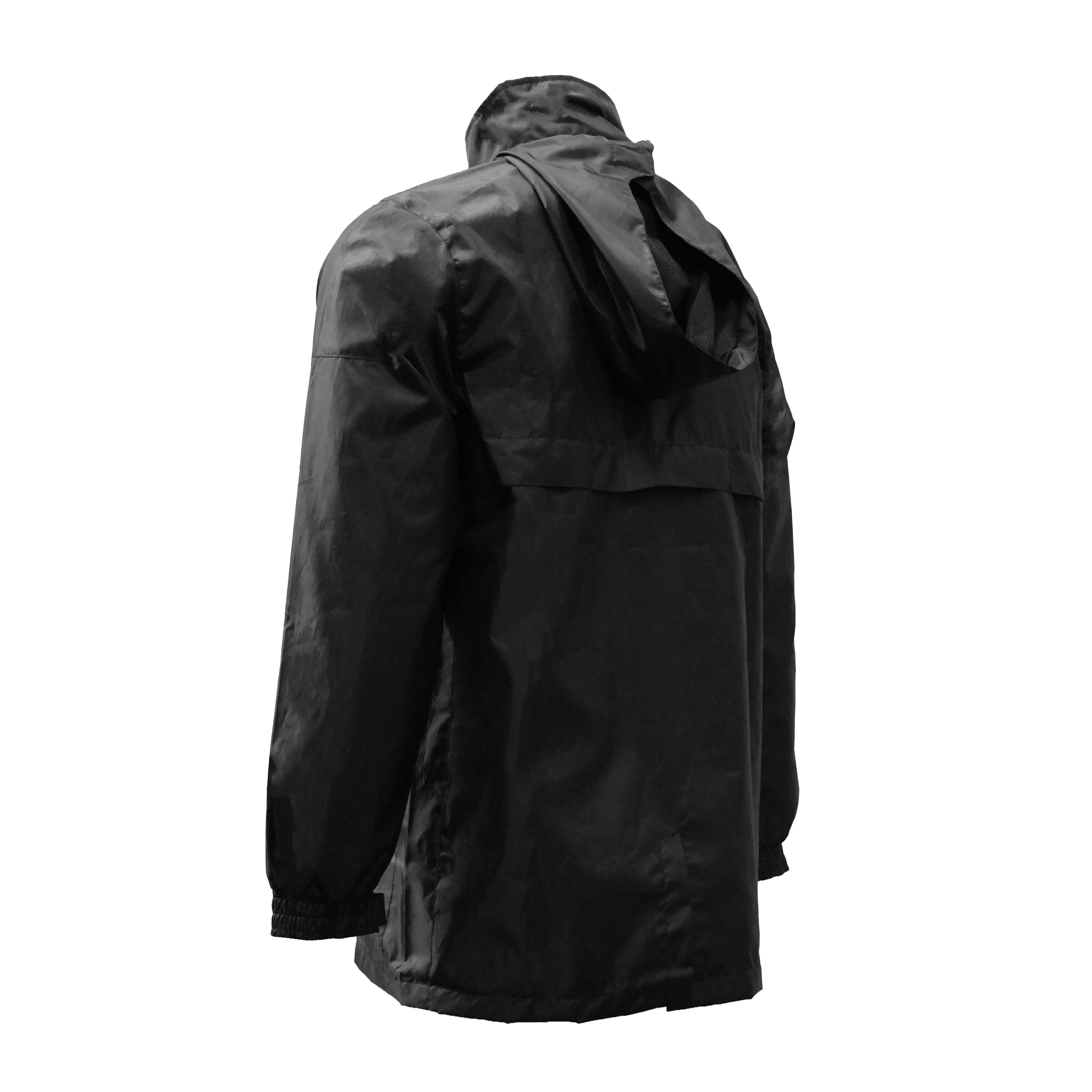 Ons regenjack biedt bedekking tijdens het sporten. Weerbestendig materiaal en de uitneembare capuchon in de kraag beschermt je tegen slecht weer.